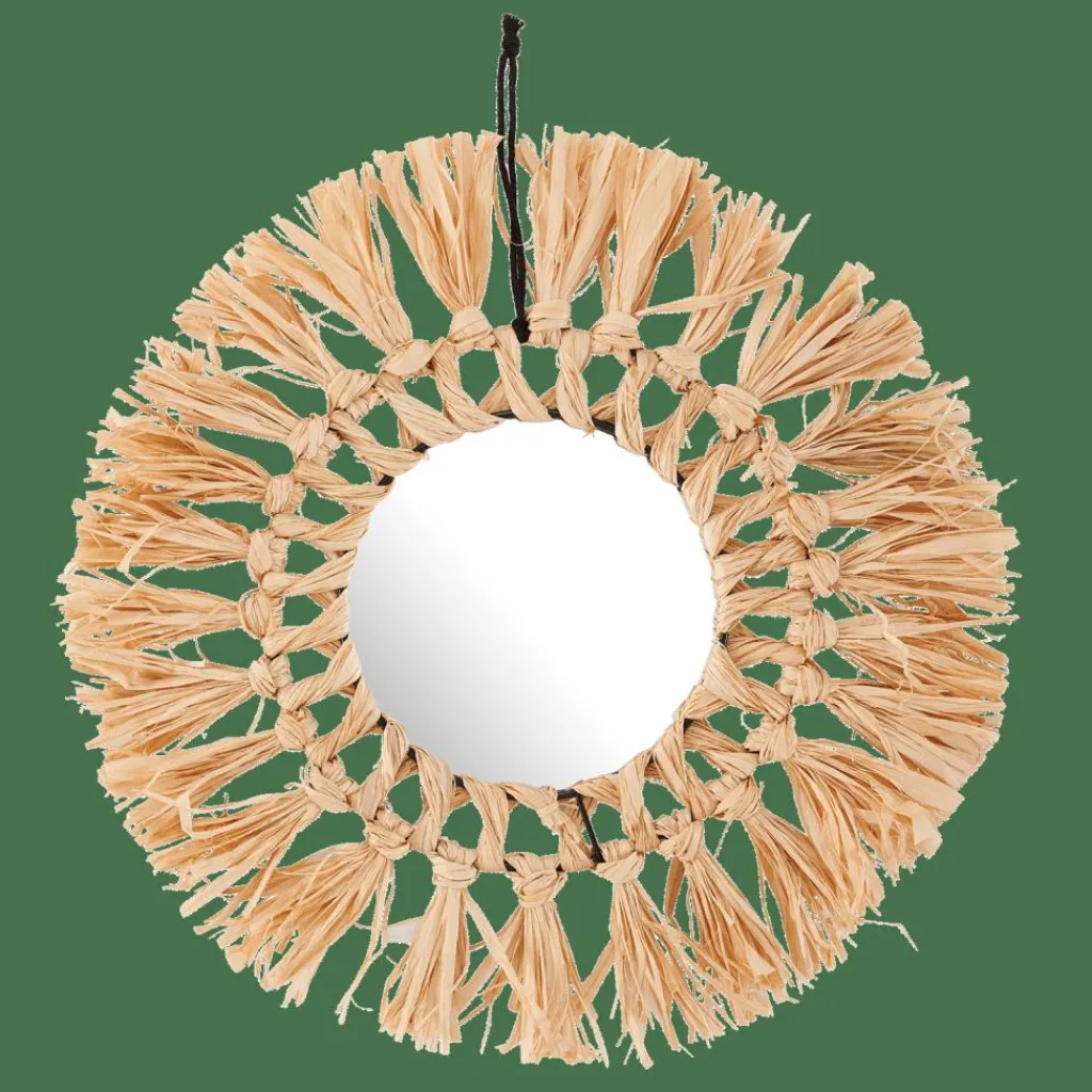 - Verre miroir, métal et raphia