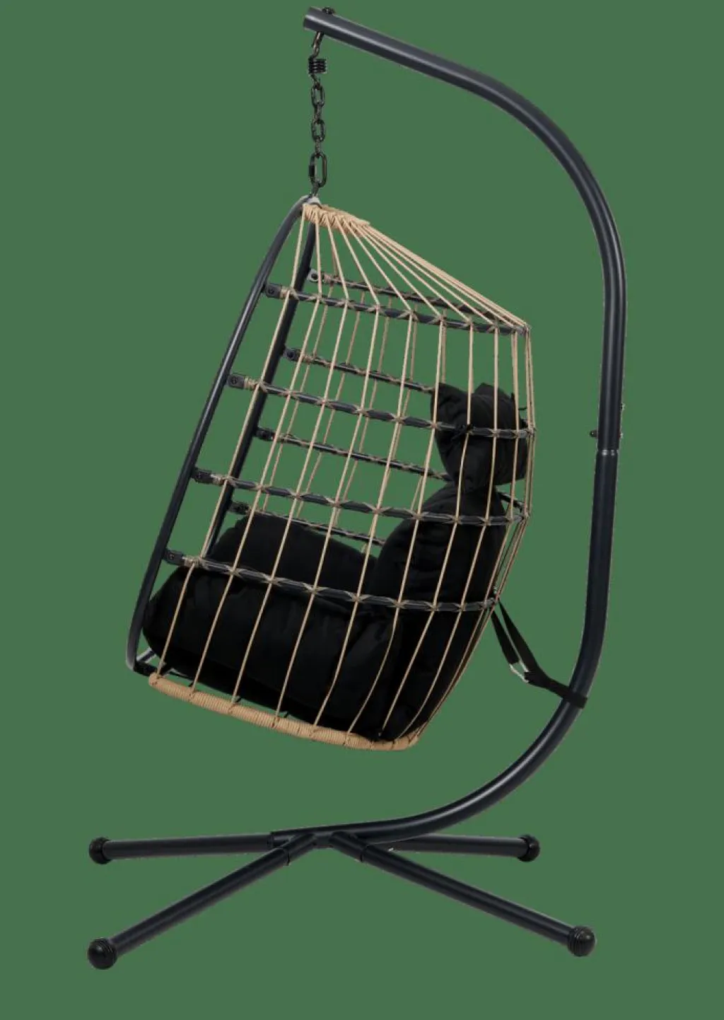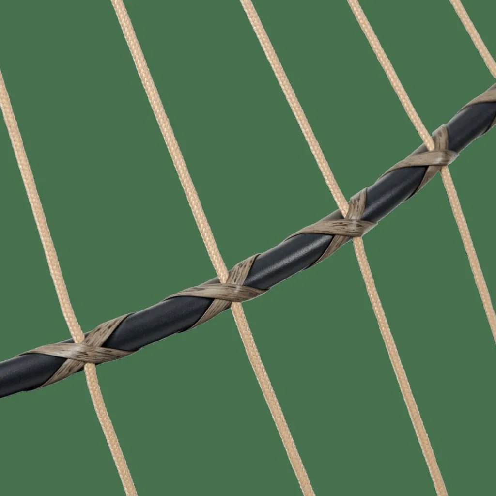 - Structure acier, Laque en poudre noir, 1,8mm diamètre, Corde, naturel, 6mm diamètre, Coussin, Polyester filé, noir